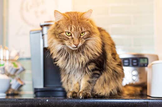 Cats love lounging on countertops, shelves and other second-story territories. The higher the perch, the better. That poses a hygiene and safety issue for cats who stroll across the stovetop. But you can't stop this natural inclination.